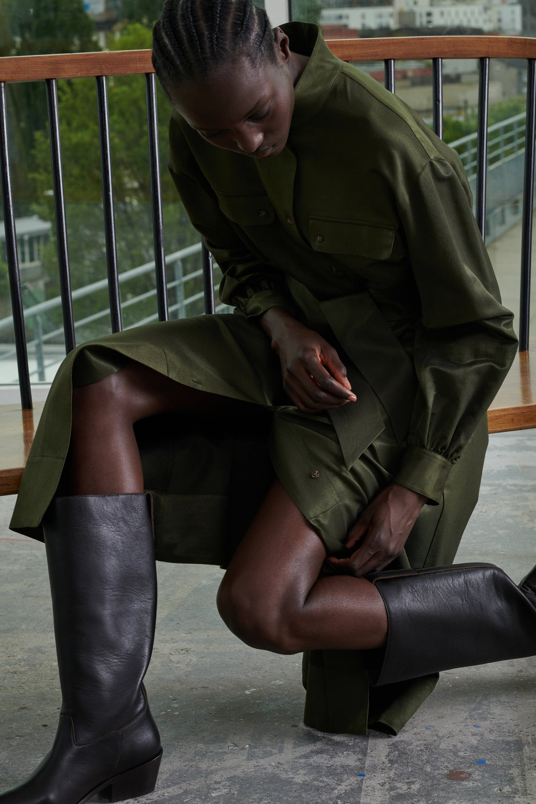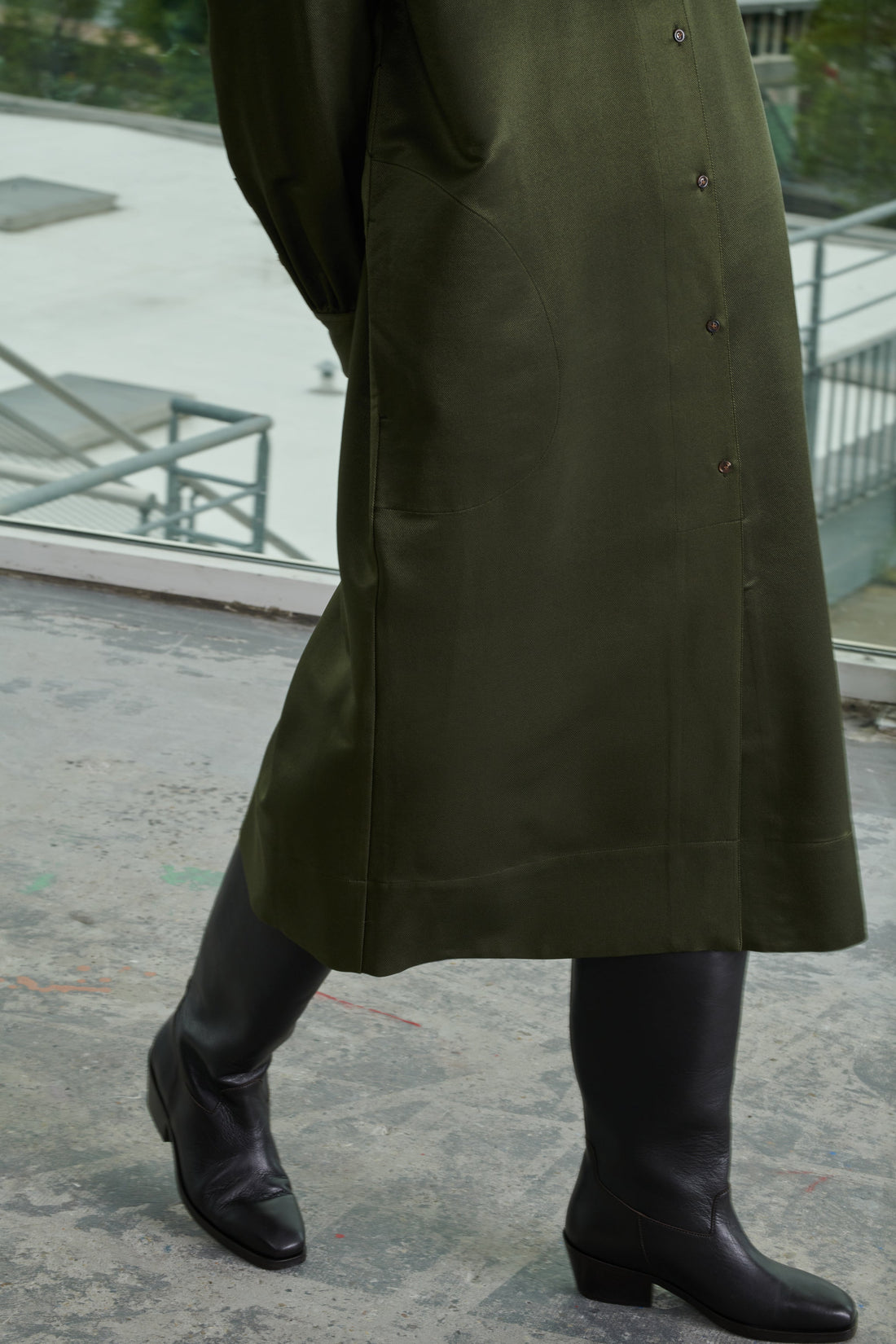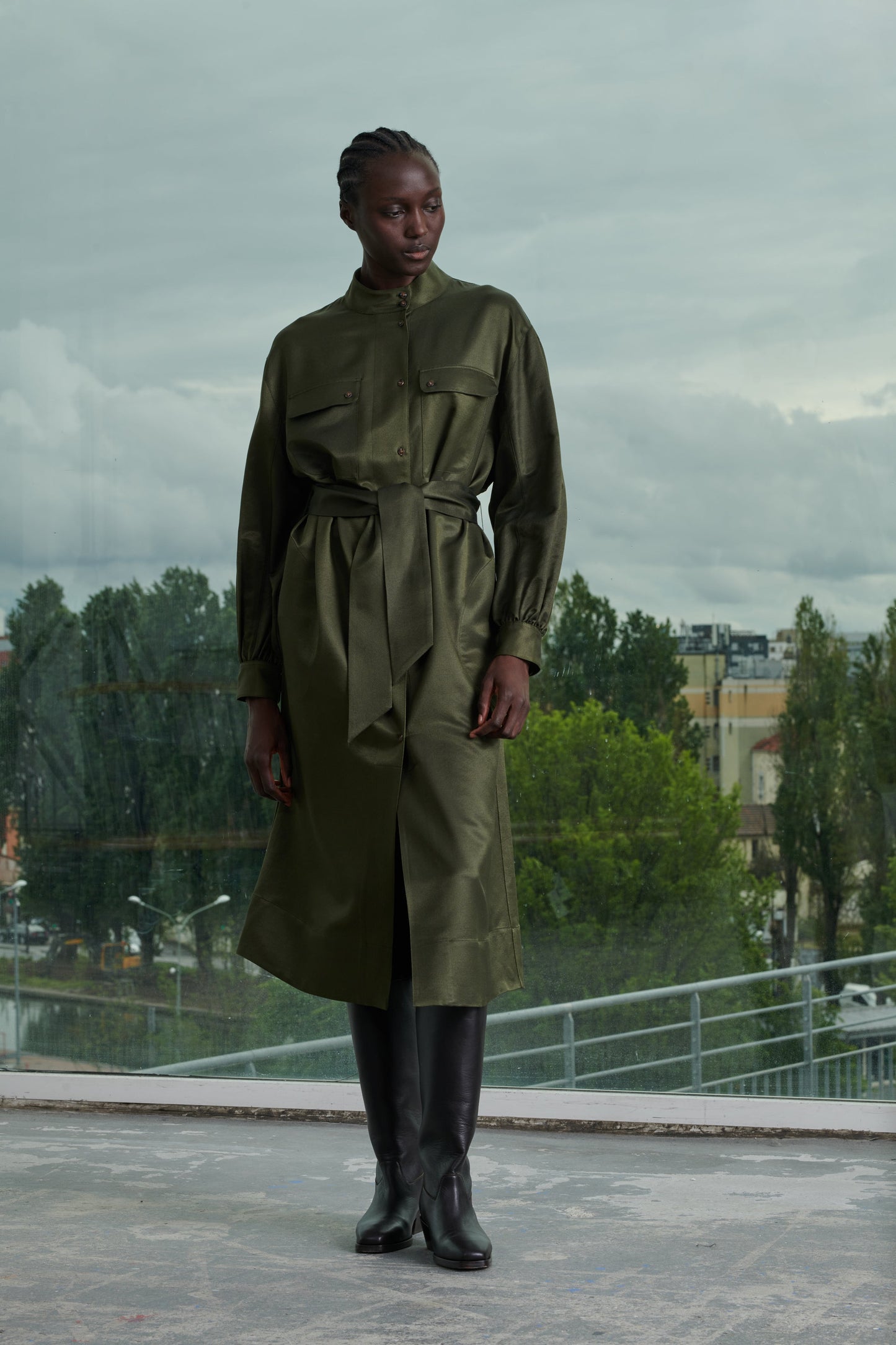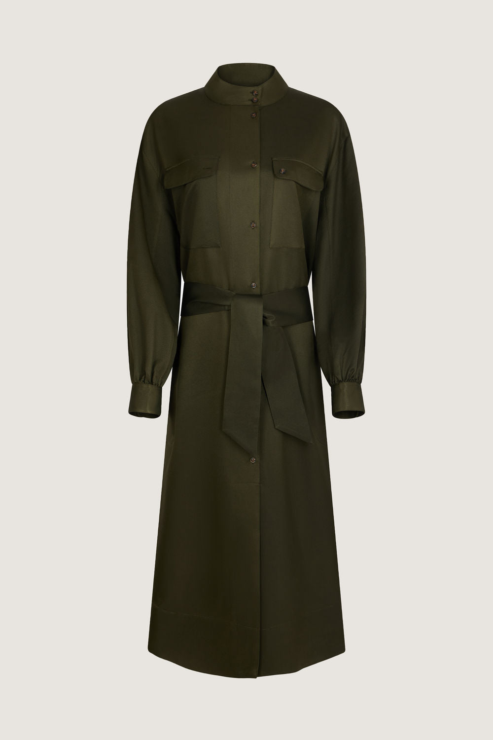 Silk and wool button neck dress khaki